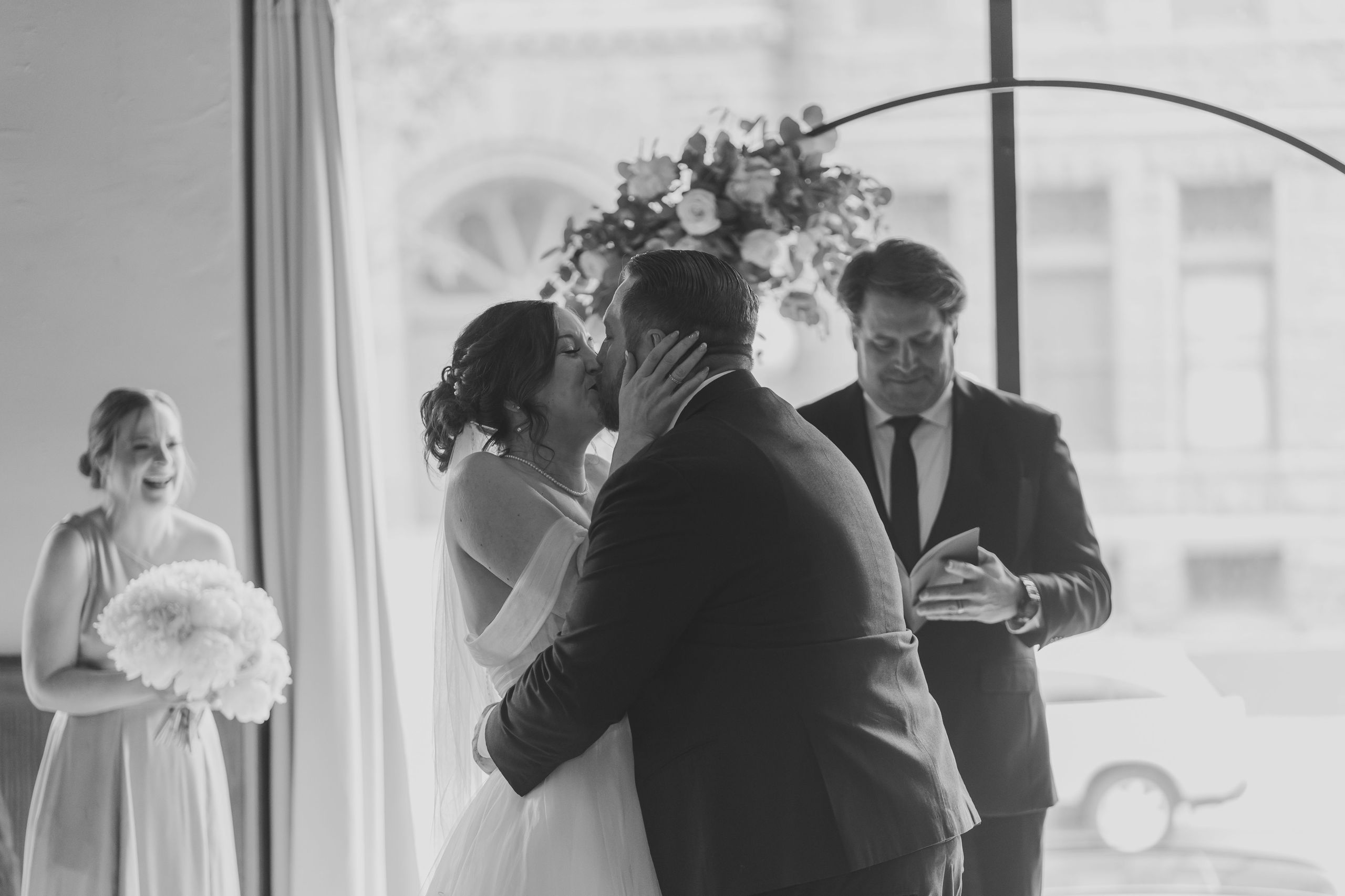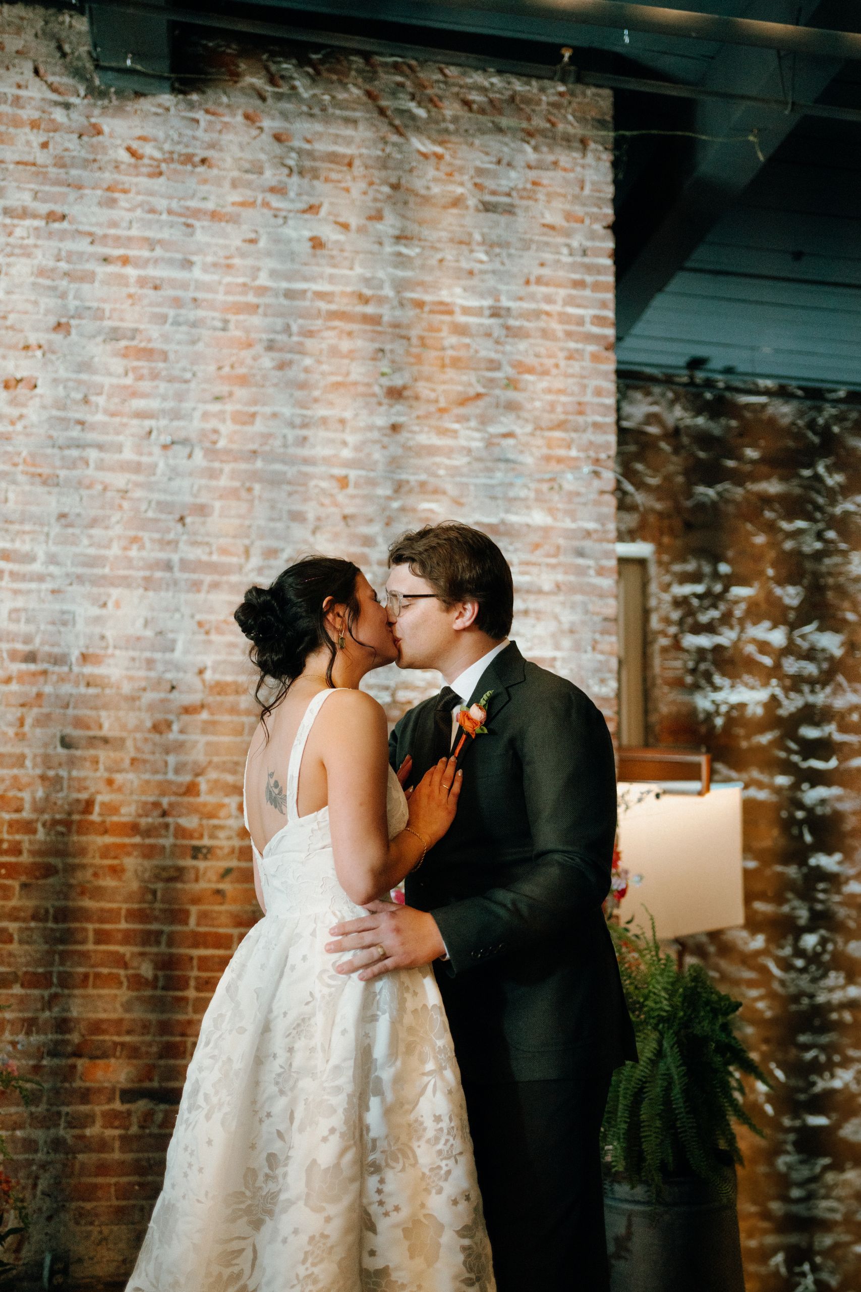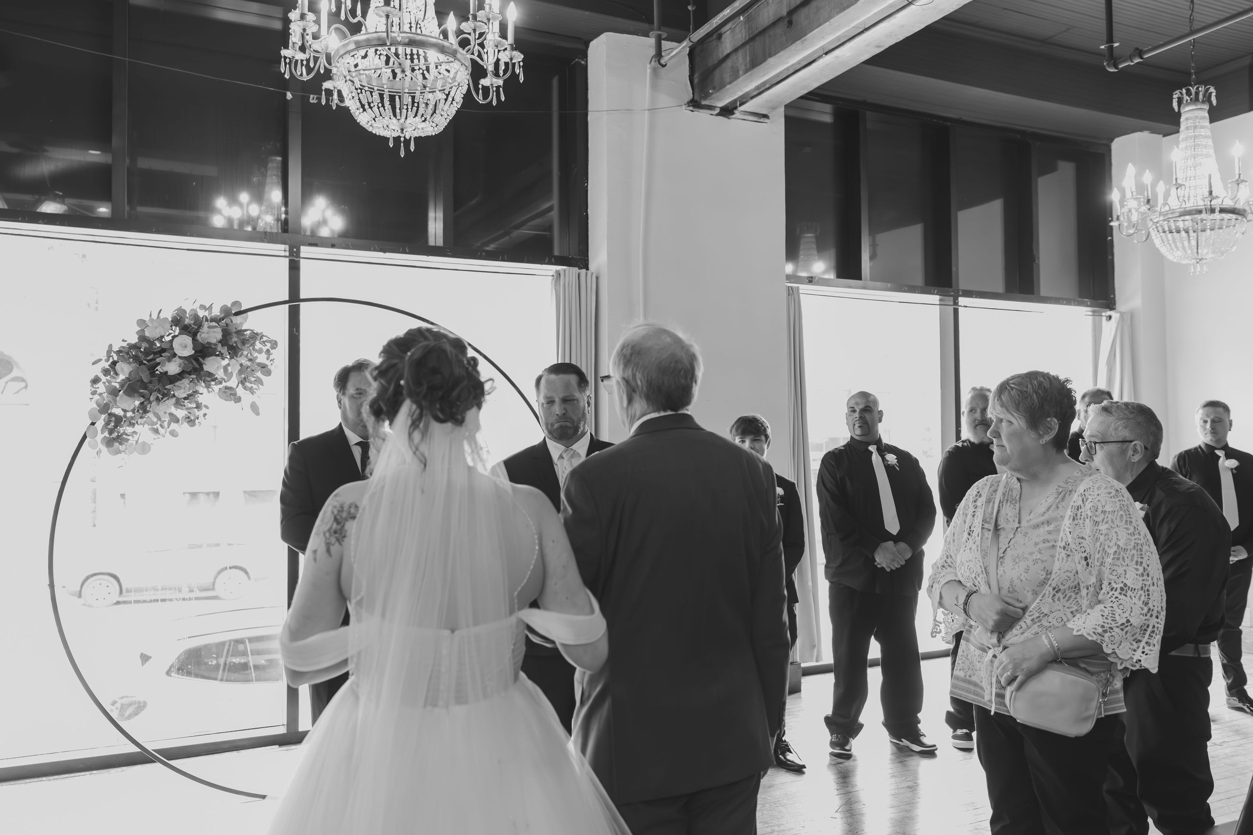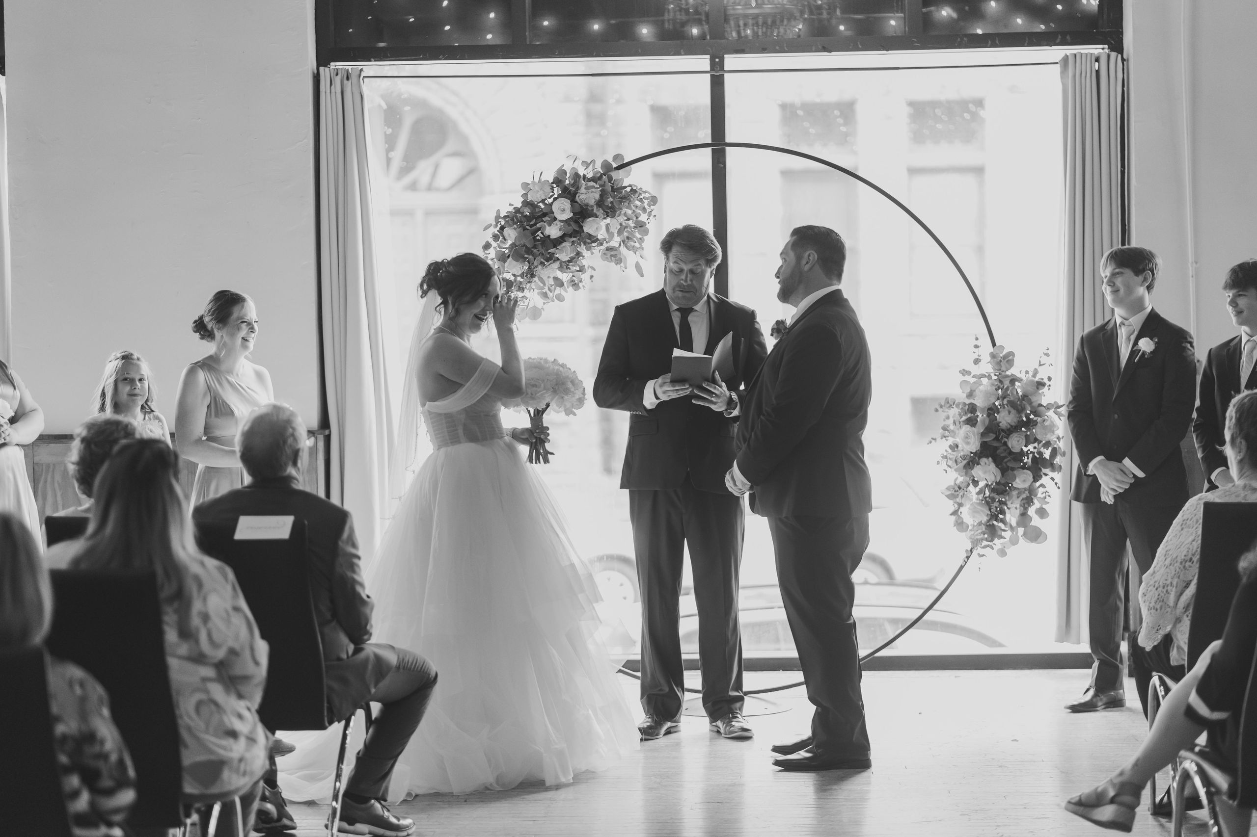 A magical ceremony moment as the couple exchanges vows at ICON Event Hall, downtown Sioux Falls’ premier wedding venue. Photo credit: Lil Perspective...