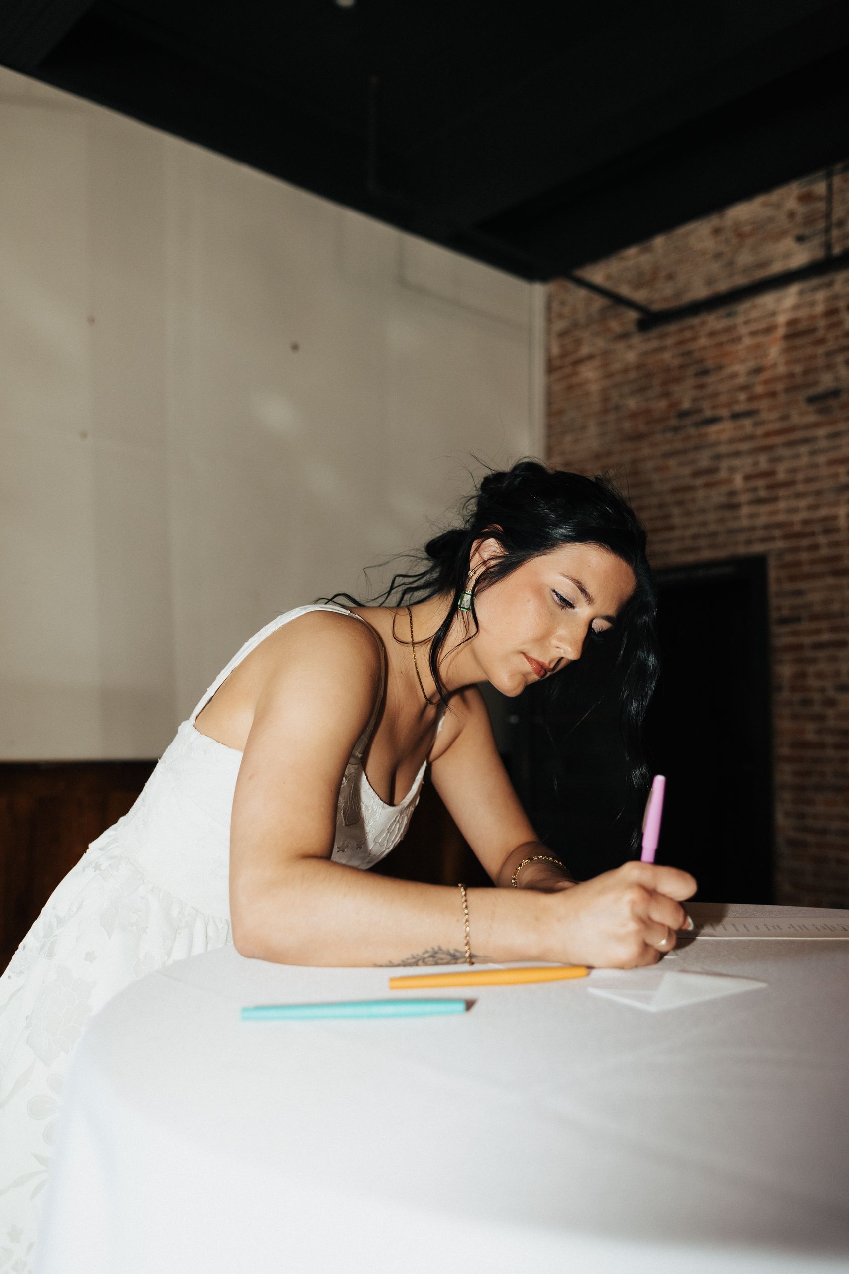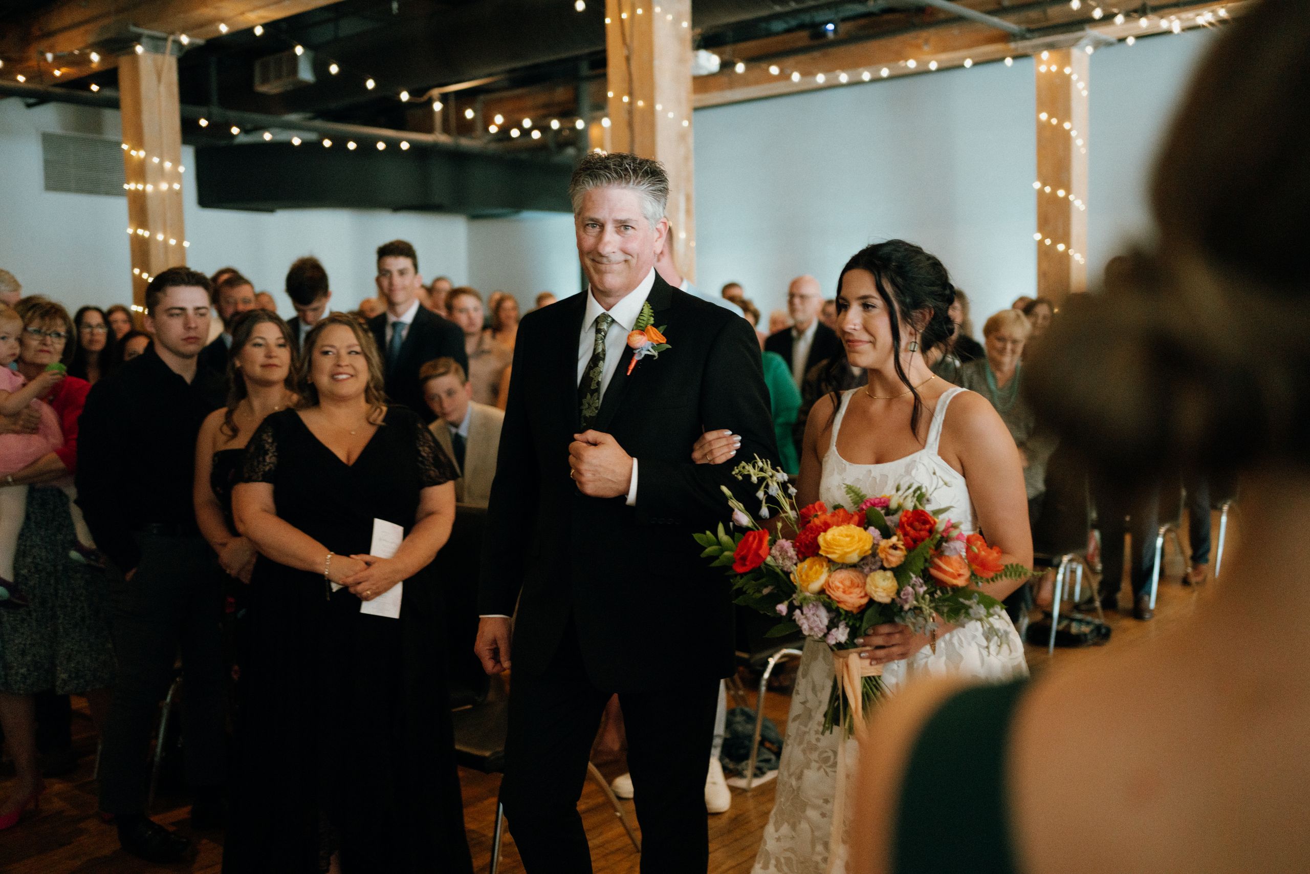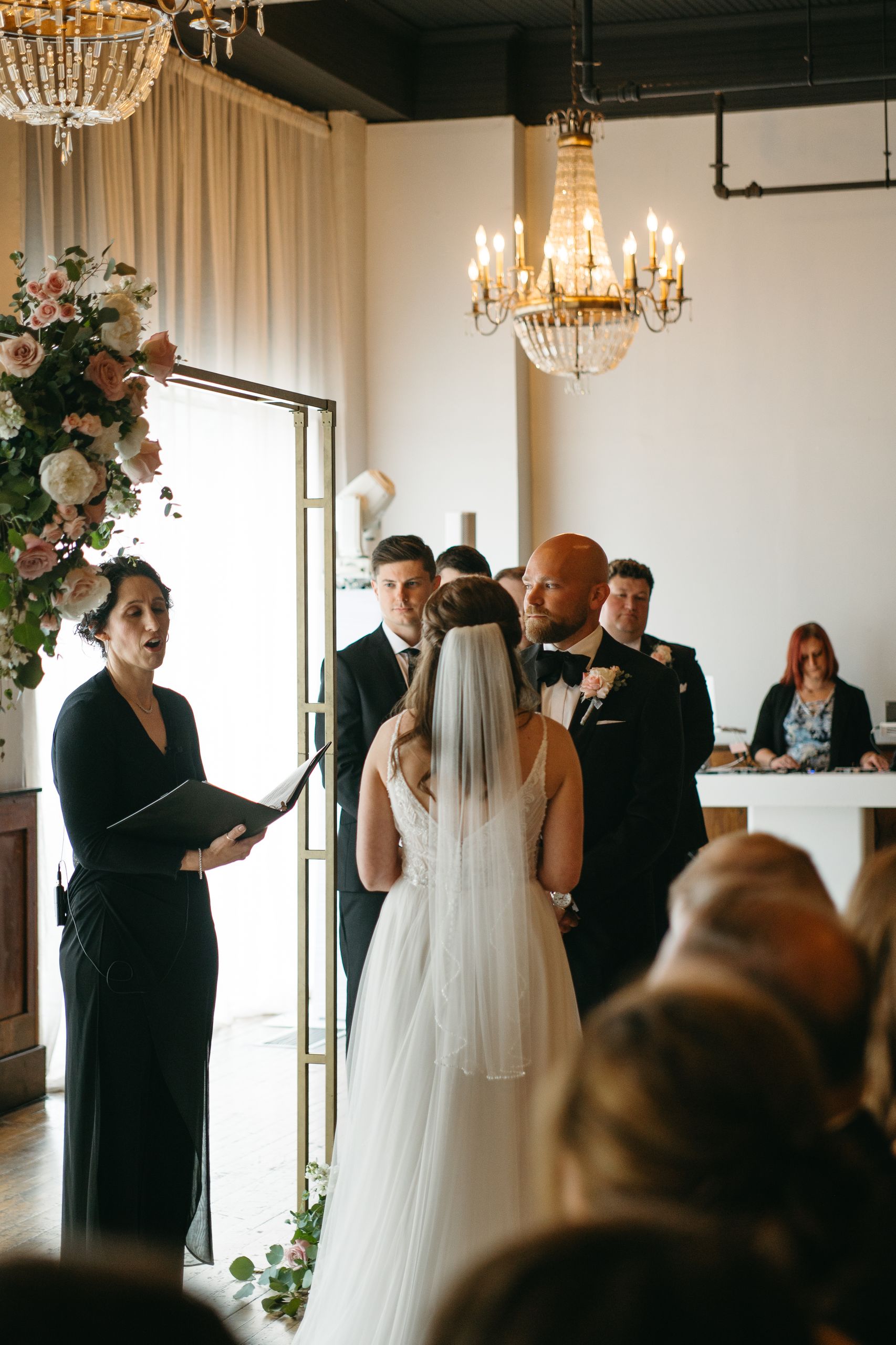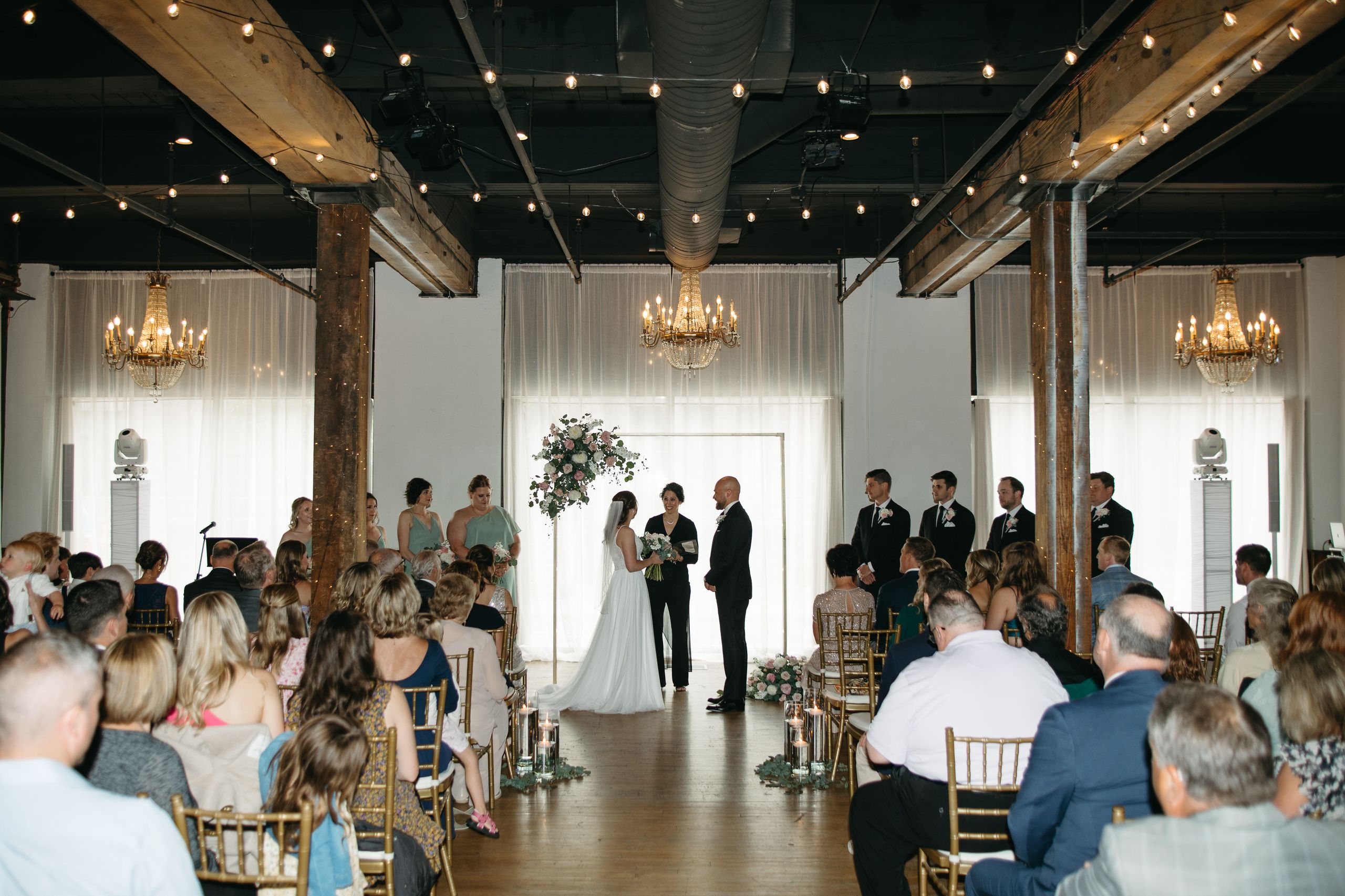 A magical ceremony moment as the couple exchanges vows at ICON Event Hall, downtown Sioux Falls’ premier wedding venue. Photo credit: Lil Perspective...