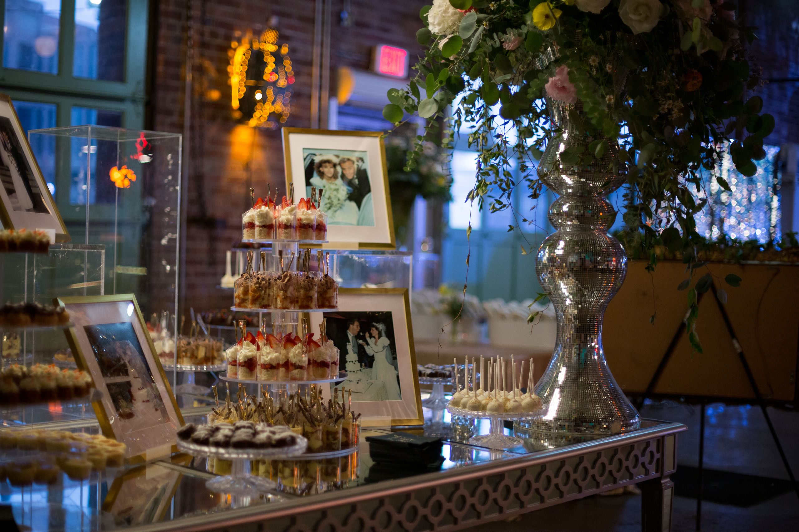 Sweet treats at Jen’s wedding reception at ICON Event Hall, downtown Sioux Falls’ premier wedding venue. Photo credit: Christian Holmon...