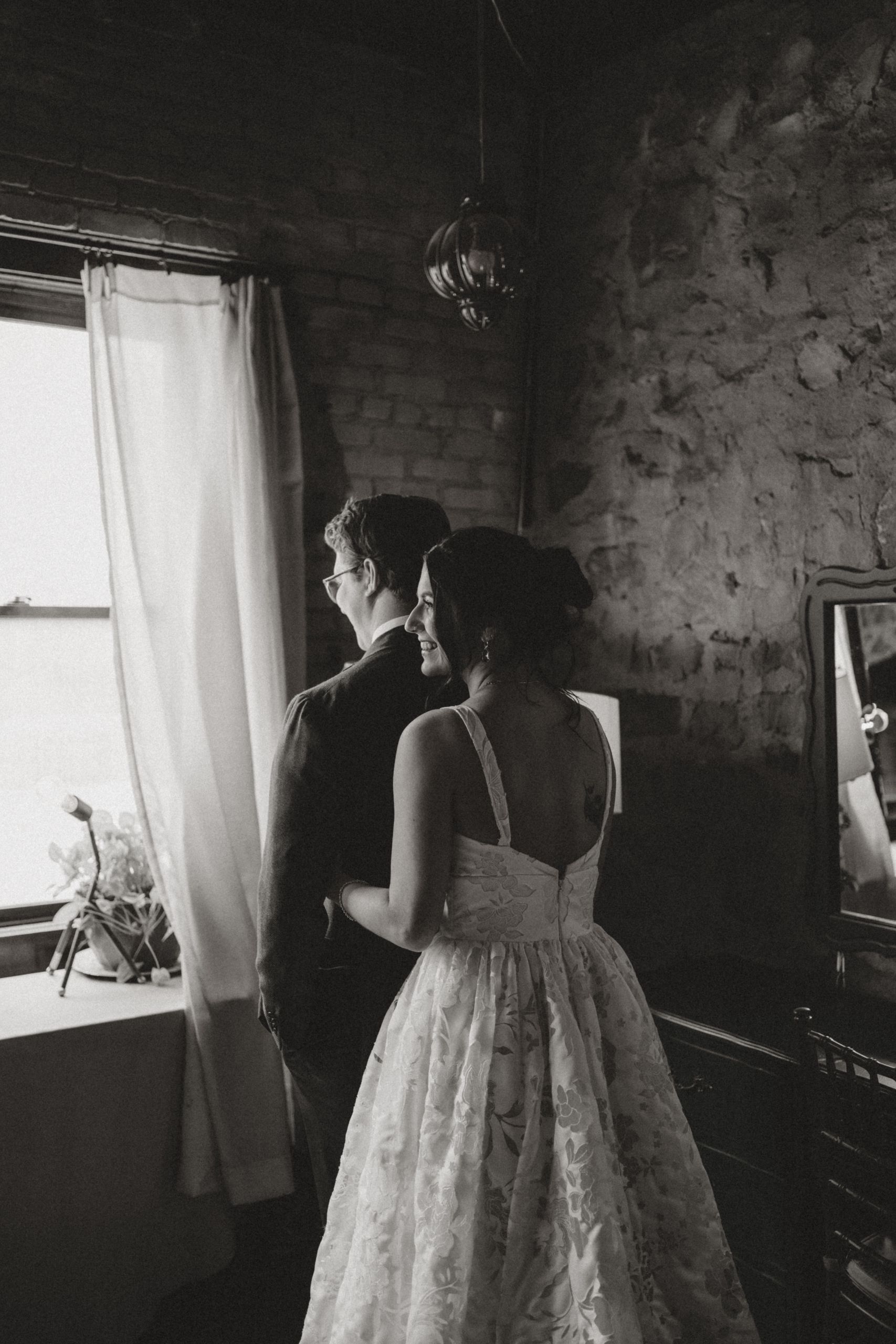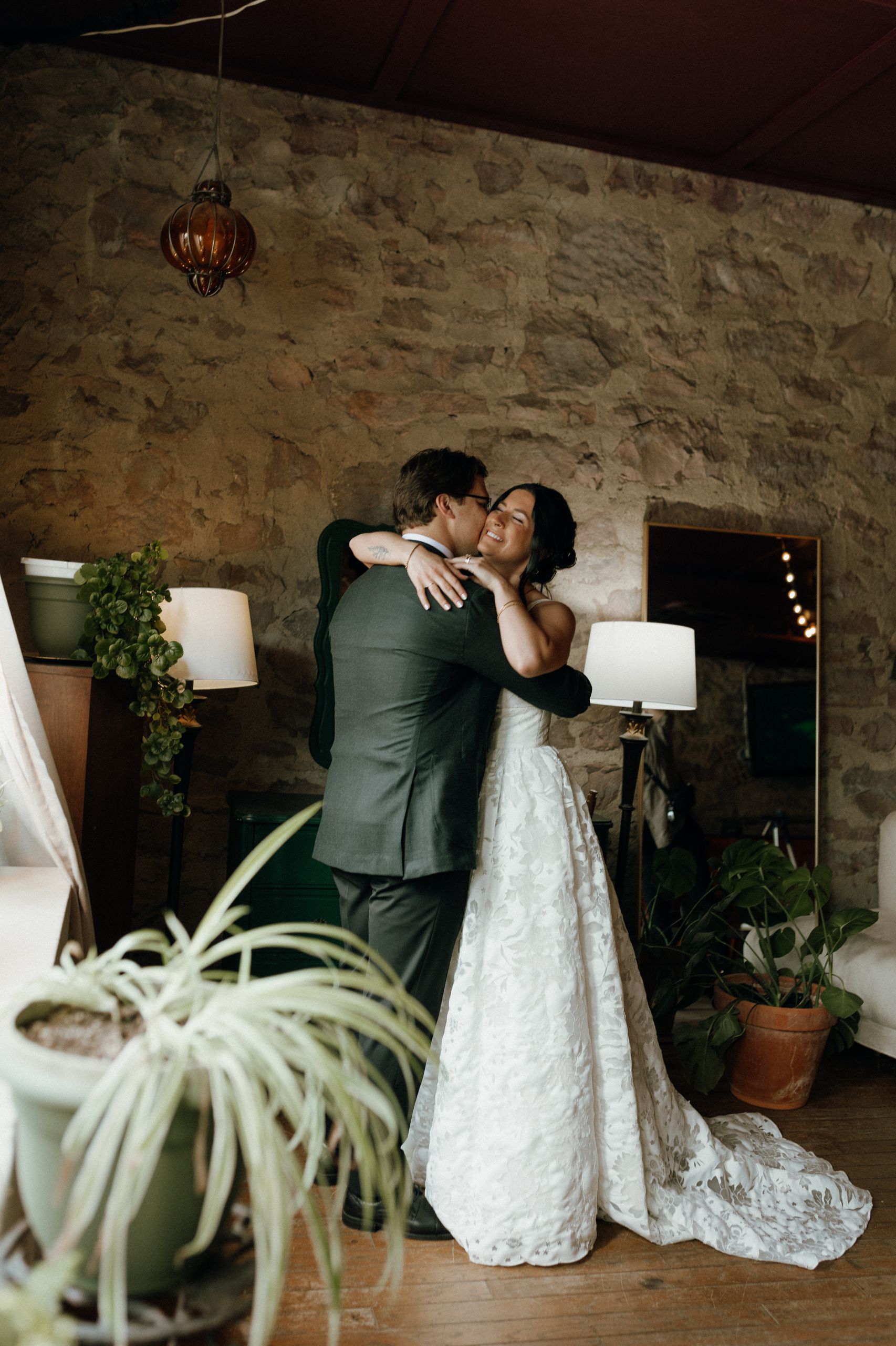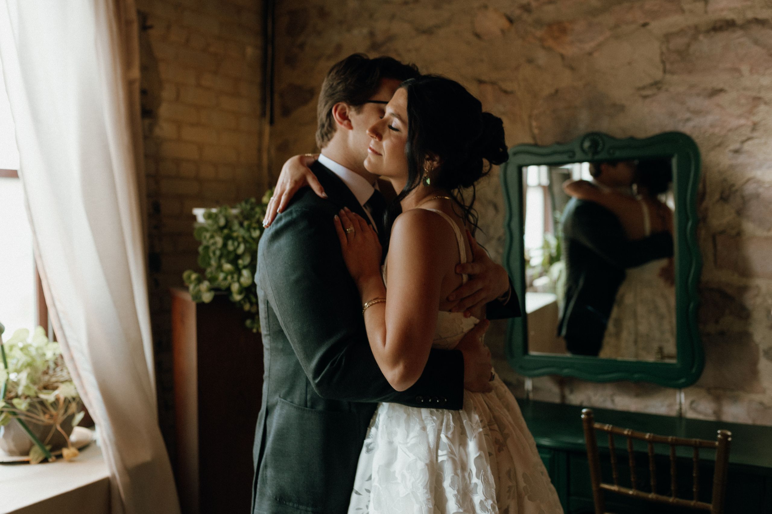 An emotional first look moment for the couple at ICON Event Hall, downtown Sioux Falls’ premier wedding venue. The elegant bridal suite was the perfect setting. Photo credit: Lil Perspective...