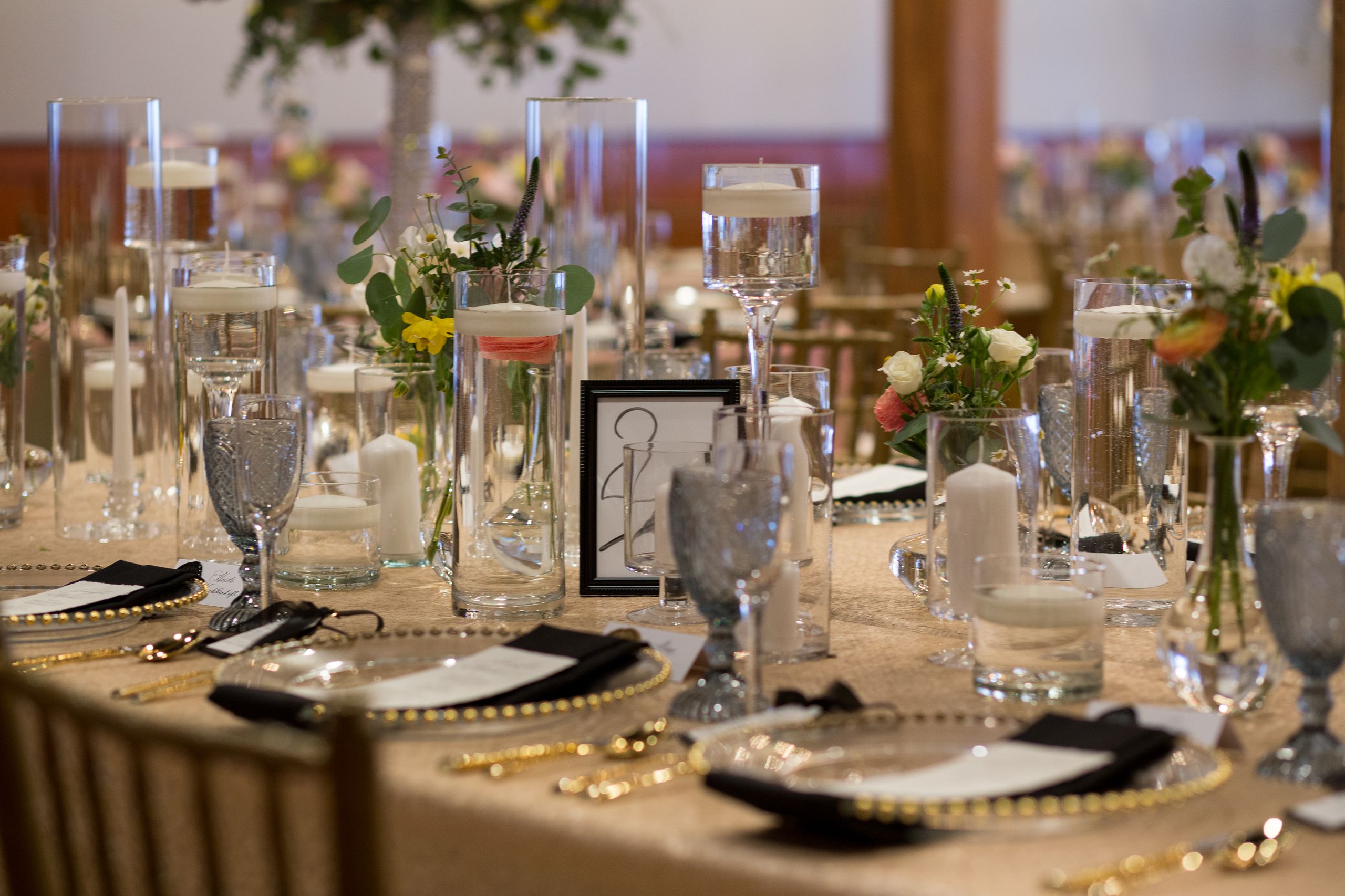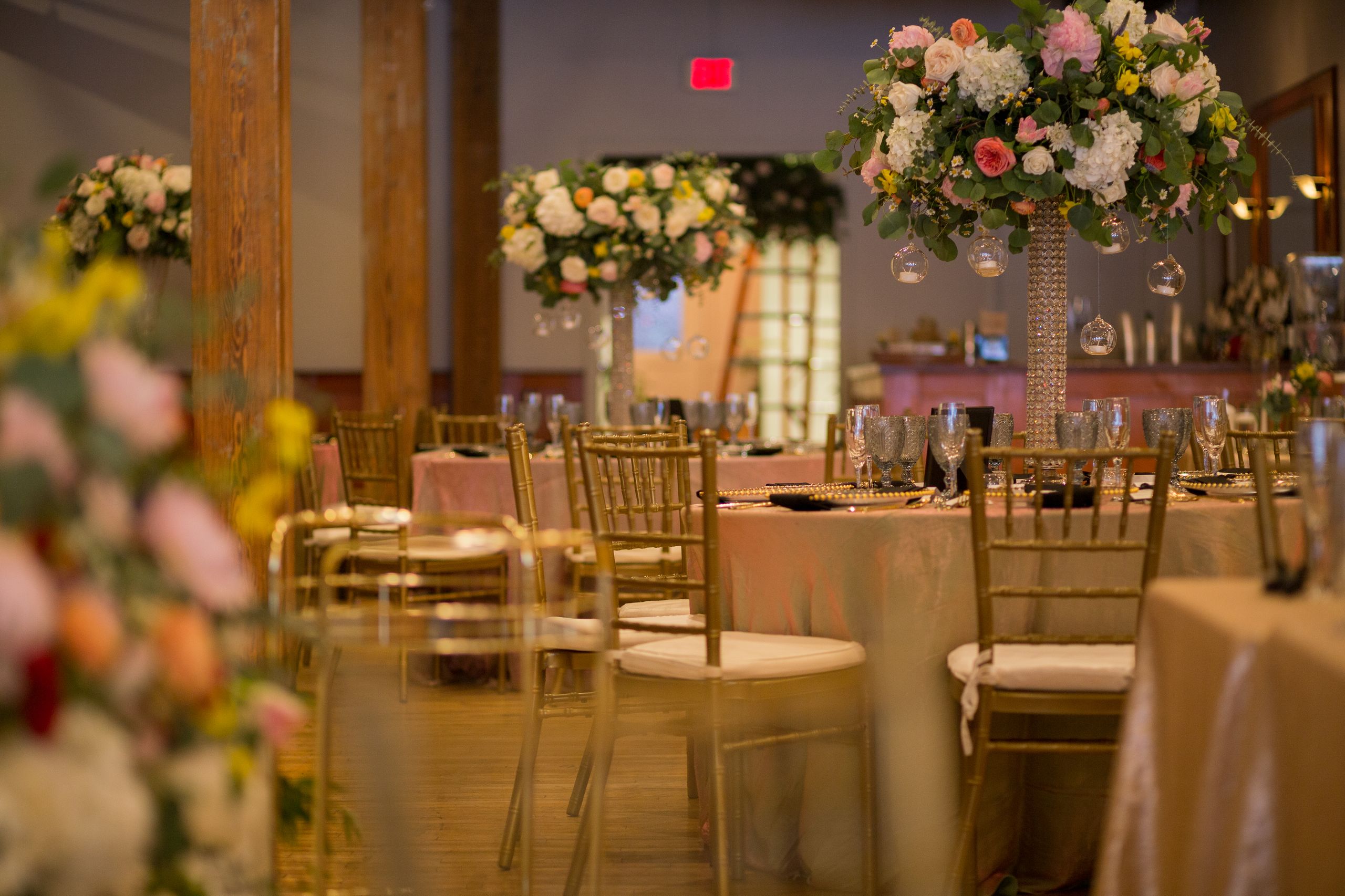 Beautiful reception styling for Jen’s celebration at ICON Event Hall, downtown Sioux Falls’ premier wedding venue. Photo credit: Christian Holmon...