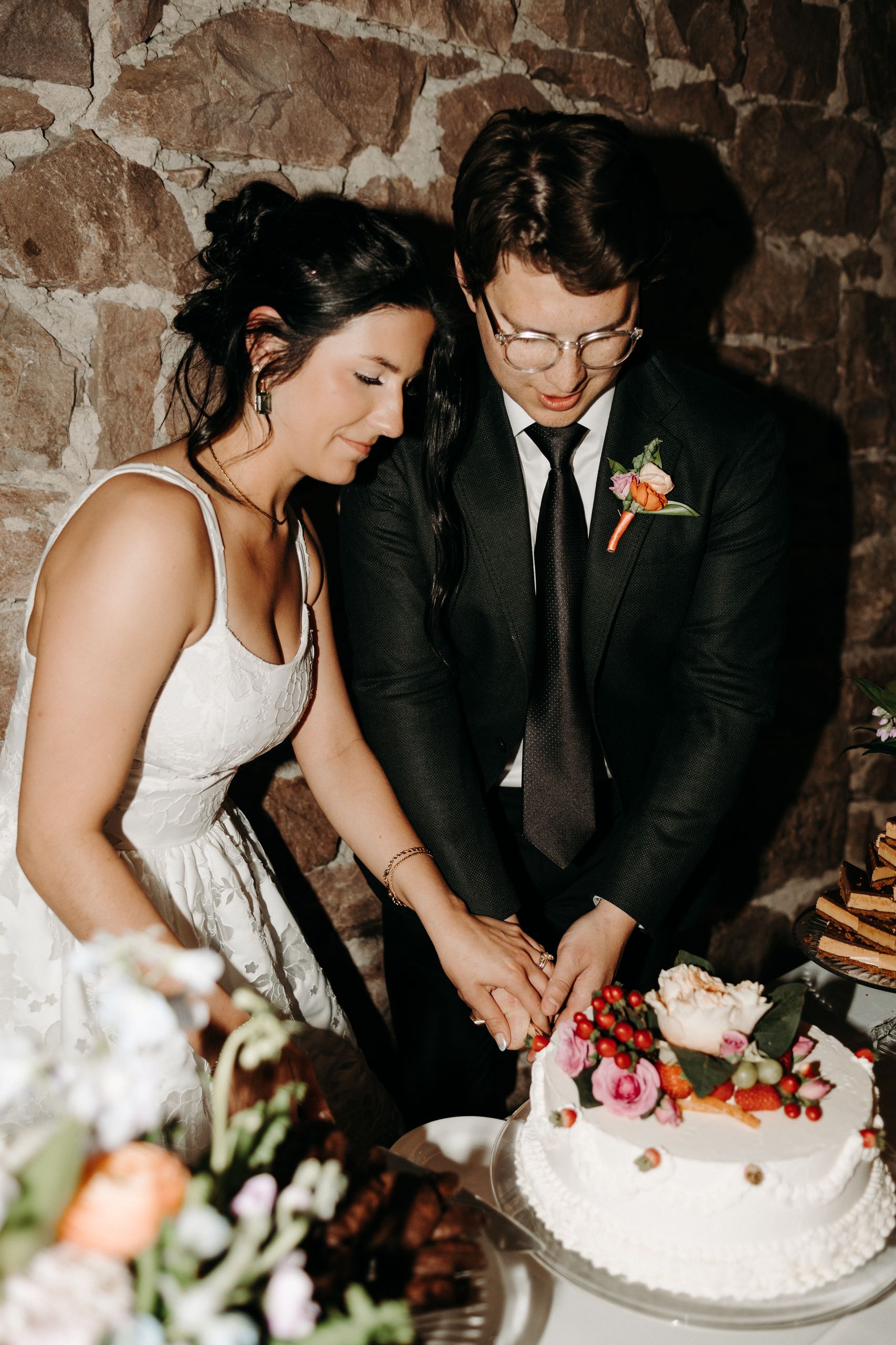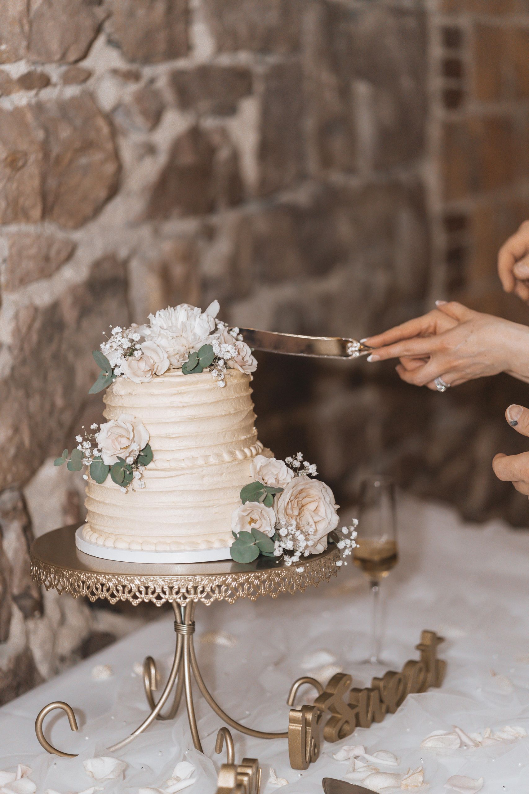 The beautiful wedding cake at the couple’s celebration at ICON Event Hall, downtown Sioux Falls’ premier wedding venue. Photo credit: Corey Belmer...